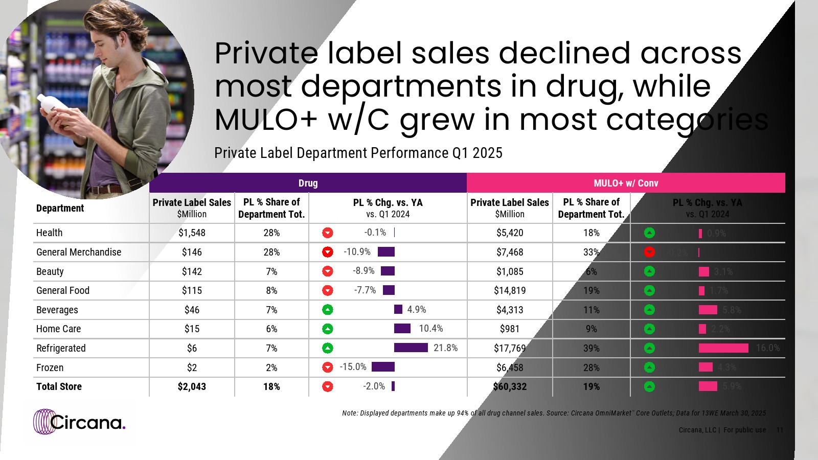 在药品渠道中,大多数部门的自有品牌销售额同比下滑,而在“MULO+便利店”渠道中,自有品牌在所有部门均实现增长。