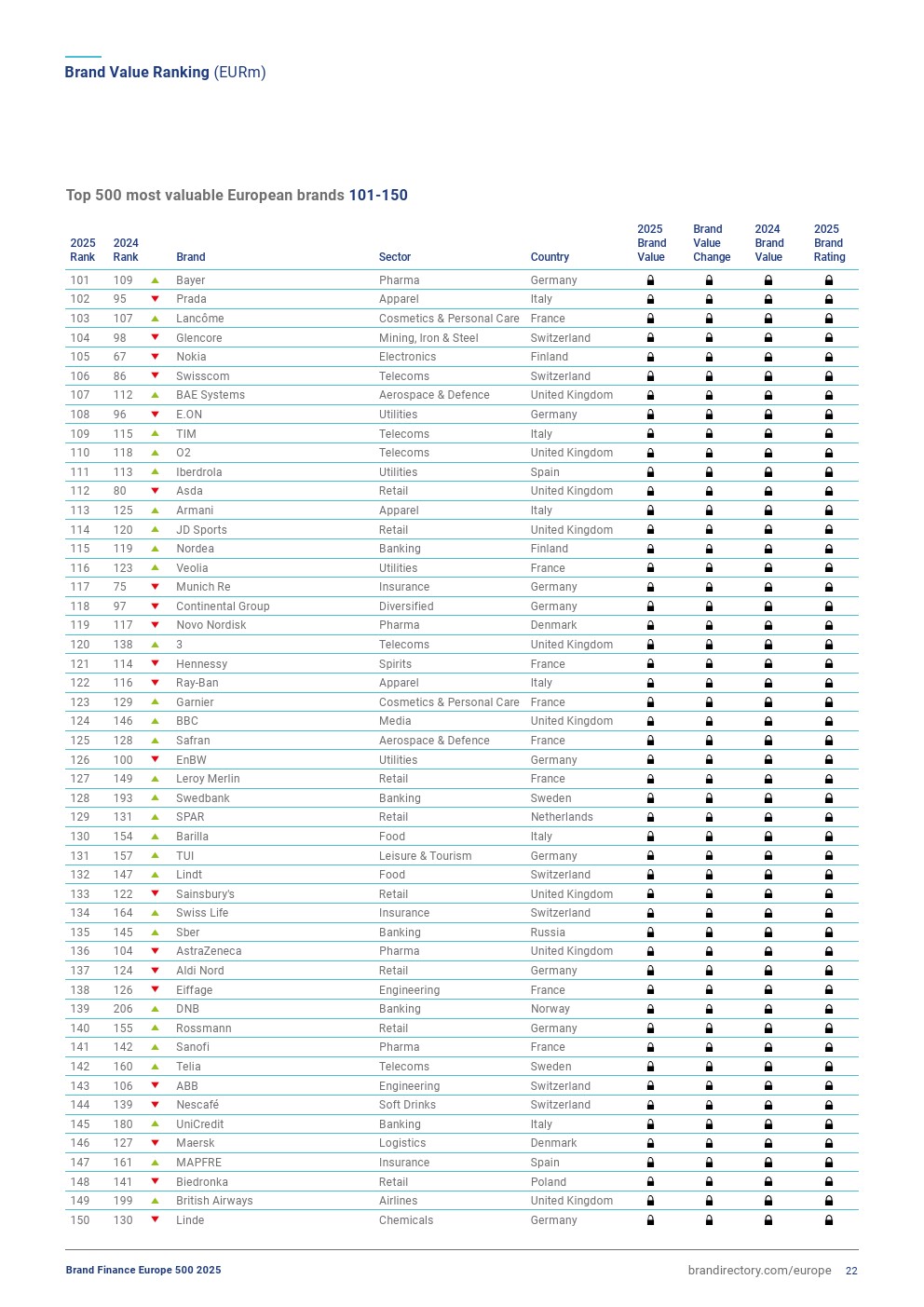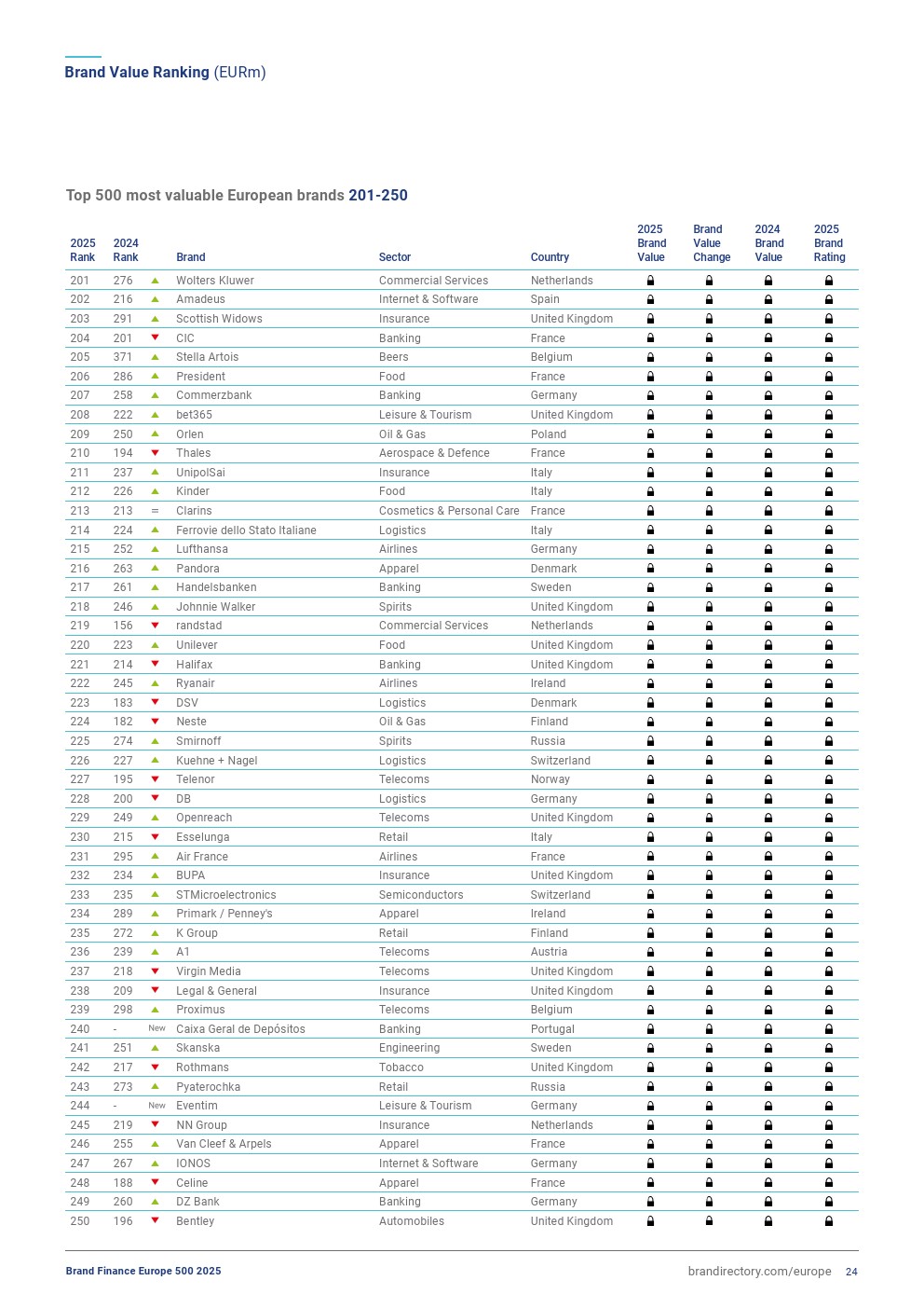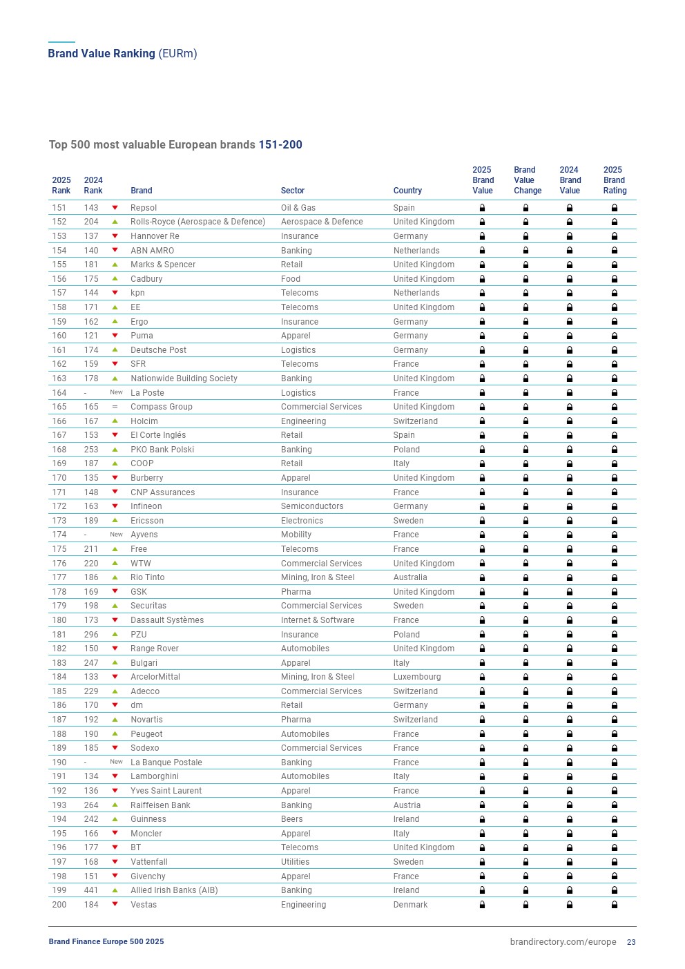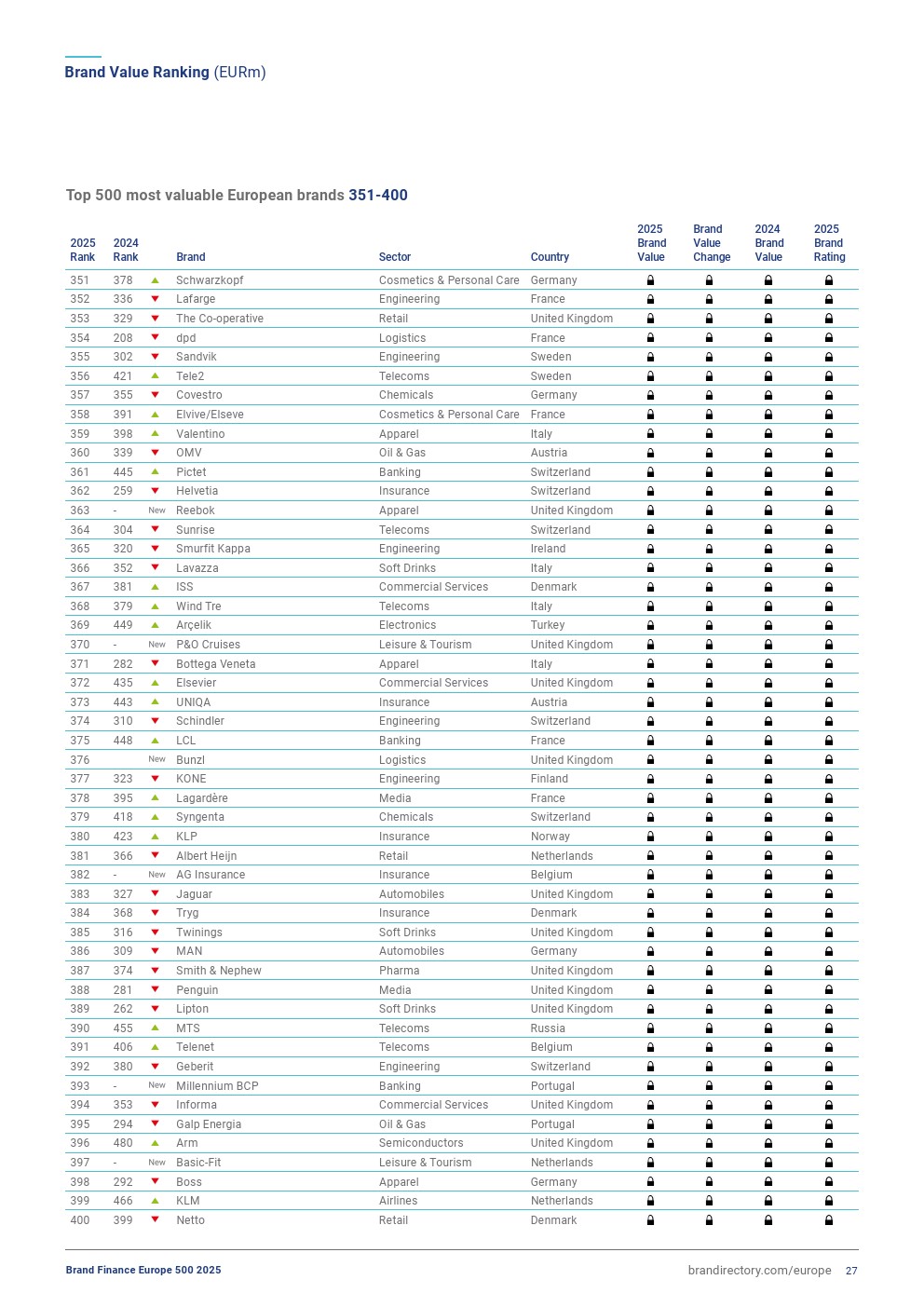 安联集团排名上升一位,排在第三位,品牌价值增长2%,达到447亿欧元。今年,该品牌表现稳定,其在欧元区的品牌认知度、可信度和吸引力方面表现非常强劲。