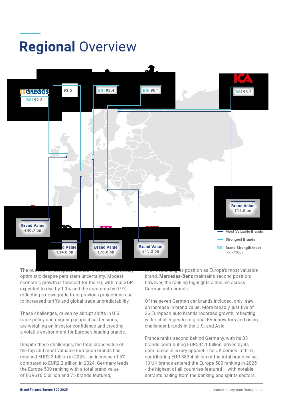 梅赛德斯-奔驰仍然是欧洲第二大最具价值品牌,尽管品牌价值下降14%,达到476亿欧元。奔驰经历了充满挑战的一年,未能实现营收目标,并实施了成本削减措施。