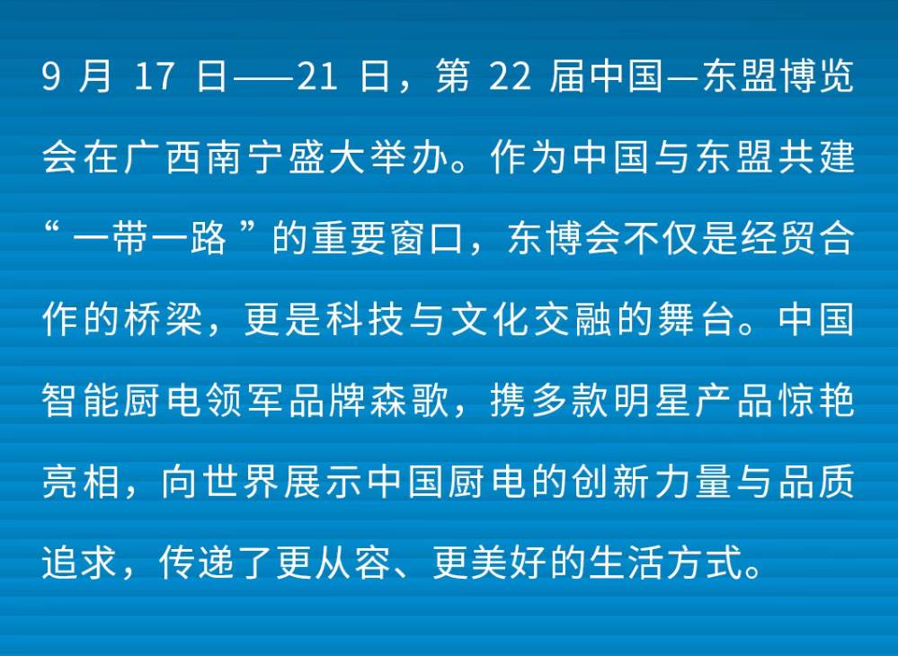 森歌亮相东盟博览会!以冠军智造,引领厨房新未来