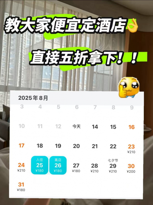 1.提前锁定优惠价格:旅游旺季酒店价格会大幅上涨,建议提前1-2个月预订。此时酒店为吸引客人,常会推出早鸟特惠,价格比临近假期时低30%-50%。以国庆假期为例,提前预订全季酒店,可比临时预订节省100-200元/晚,还能优先选到心仪的房型。