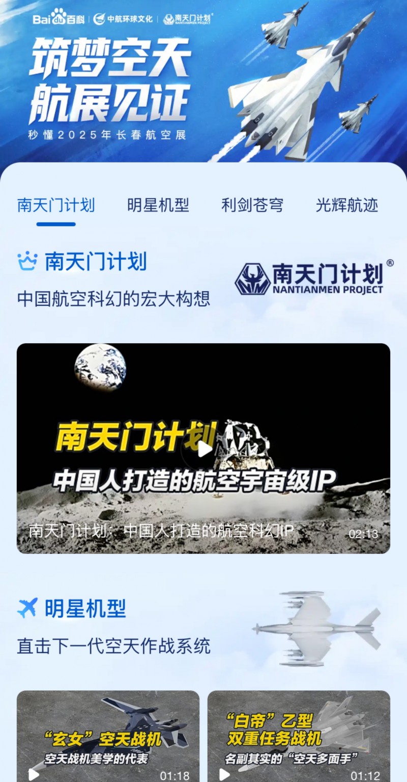 此次合作中,中航环球将向百度百科授予百余条独家视频资源,双方还将围绕今日启动的2025空军航空开放活动暨长春航空展,联合创建百科权威词条、制作沉浸式概念视频,并于线下展馆进行循环展播,现场观看人次预计突破60万。此外,双方共同打造“筑梦空天 航展见证”科普专题页,系统梳理长春航空展的明星机型与历届航展亮点,为未能亲临现场的用户提供兼具专业性与趣味性的航空知识体验。