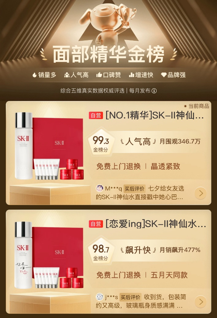 在七夕这一送礼高峰节点,SK-II在京东美妆迎来销售爆发,其超级品牌日期间的成交额同比增长17倍。