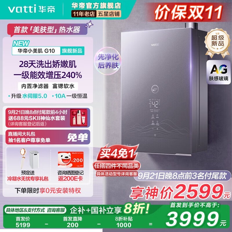 华帝小美肌G10燃气热水器大促低至3839元