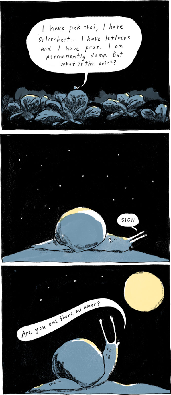 吉赛尔是一位插画家兼作家,有一天她正在清理自家院子,挖蔬菜的时候偶然发现一只蜗牛。