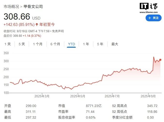 上周,该公司公布了大幅增长的订单数据,推动股价创下历史新高。今年以来,在云业务带动下,该公司股价累计已上涨 85.91%。