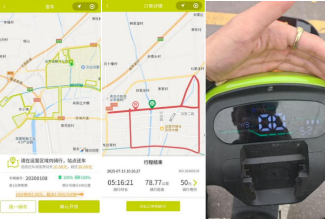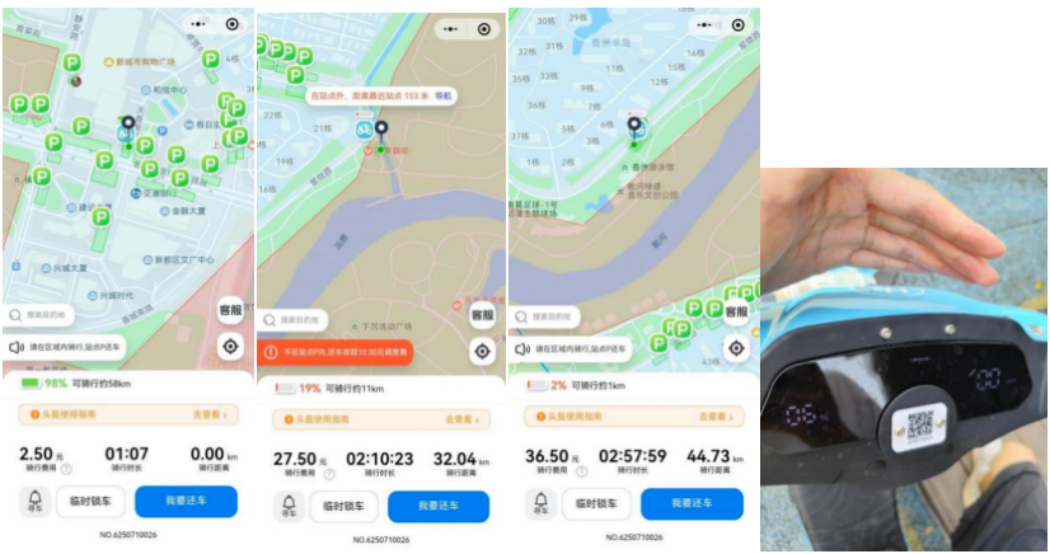 “成都C”:骑行初始SOC为100%,小程序显示续航预估110km