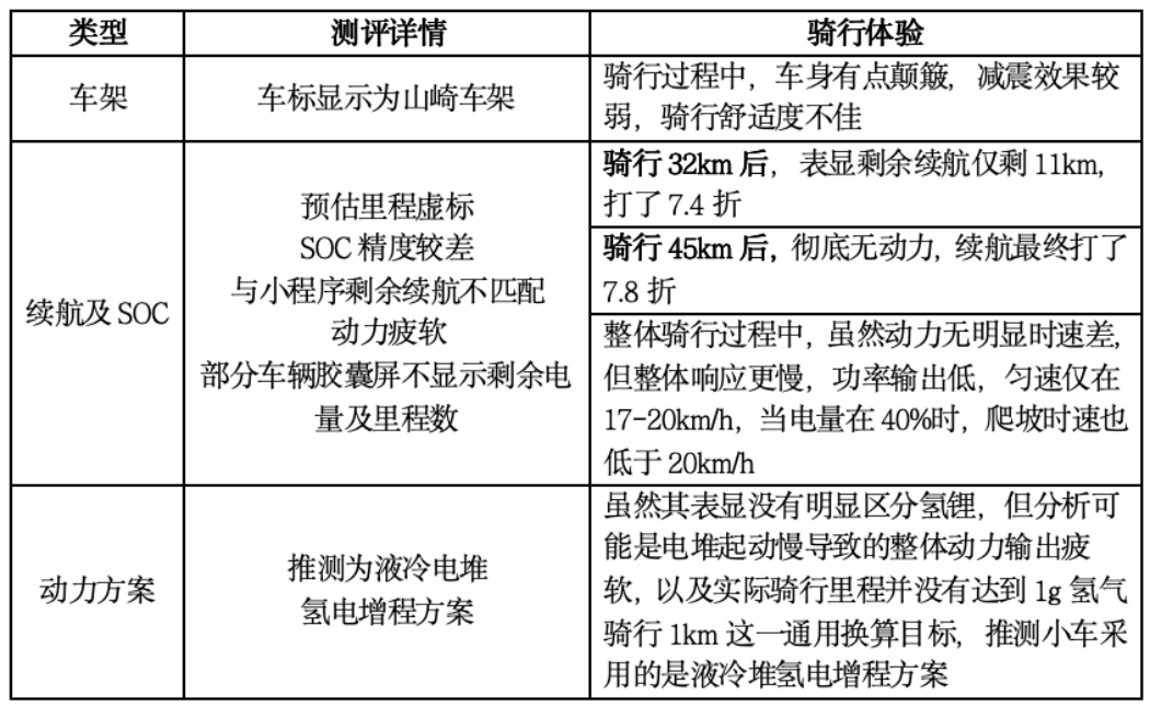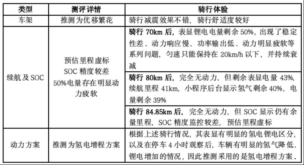 比较特别的是,该企业此前发布的同款车型测试中提到,其Pack采用的是独特的氢、锂分离式设计,氢电一体式Pack在座桶里,而小锂电池是放在踏板下的。这个隔开的设计思路确实很新颖,氢电锂电大家“井水不犯河水”,确实在很大程度上再次降低了安全风险。
