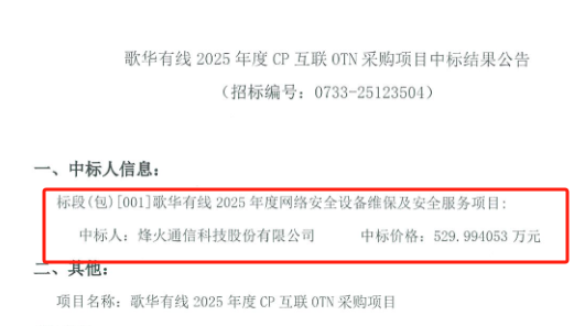 第一中标候选人是烽火通信,投标报价为529.994053万元,第二中标候选人是北京歌华益网科技发展有限公司,投标报价为730万元;第三中标候选人是中兴通讯,投标报价为695.001369万元。