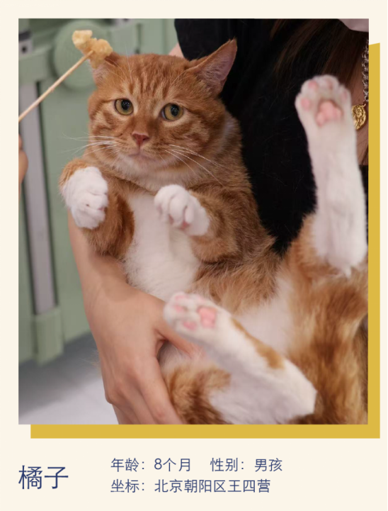 救助故事:非常可爱的小橘猫,小区门口的猫保安,活泼开朗又亲人,还是个傻白甜,下雨不知道躲雨,因为这几天北京大雨就先抓住放到宠物医院了,与医生商量绝育了,已经恢复好,现在寻找靠谱有爱家庭。