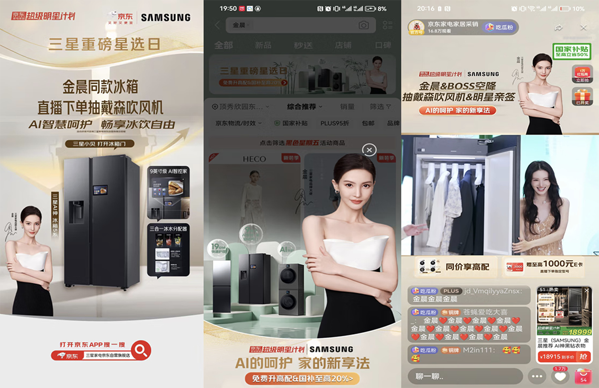 当天晚间,金晨携手京东及三星品牌BOSS做客京东家电家居采销直播间,详细介绍了三星AI神洗烘护套组如何以“衣美级”护衣硬核技术提供高端衣物洗烘护一站式解决方案,并呈现了三星AI神冰箱在食材保鲜、杀菌除味、食材信息查询、声控自动开门等功能上的强大科技力量,三星正以智慧化冰洗科技与个性化外观设计,为消费者带来科技时代中全新的理想家居体验。同时,直播间内福利密集放送,大额红包雨、戴森吹风机抽奖、高配版免费升级等多重权益,精准击中粉丝对“实在权益”的需求,有效推动粉丝从“情感认同”向“实际消费”转化,实现活动声量与销量的双重提升。