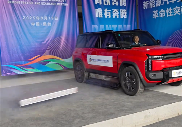 演示视频显示,随着一声巨响,动力电池从车辆底盘下弹出,并从副驾侧抛出车身数米远。