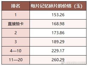 只有在排名首位时,该方法的性价比才能超过直接使用抽卡,从第二名起,性价比便略逊于直接抽卡。各段位具体性价比可参考图一中,数值越低越具优势。