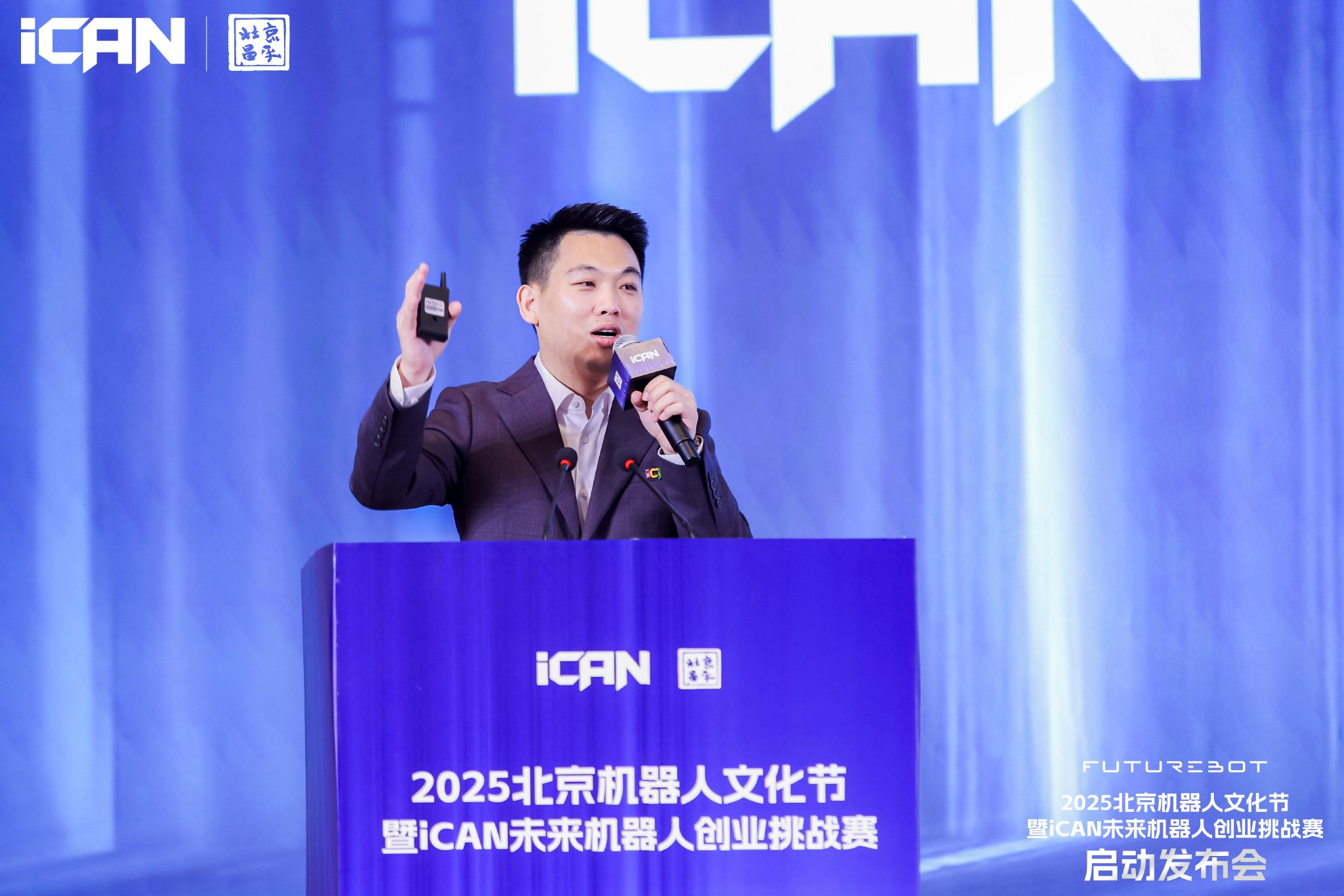 发布会现场,“FutureBOT未来引力”2025北京机器人文化节与iCAN未来机器人创业挑战赛正式启动,两大活动将从“全民科技体验”与“高校科技创业”两个维度,全方位推动机器人产业生态建设。