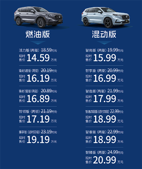 快科技9月22日消息,东风本田CR-V 30年荣耀款正式上市,共推出11款车型,指导价18.59万-24.99万元,限时售价14.59万-20.99万元。