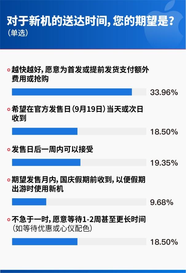 从具体的机型选择上,62.32%用户首选iPhone 17 Pro/Pro Max,35.42%倾向 Pro Max;存储方面,512GB版本(44.25%)超256GB(36.82%)成最受欢迎选择,消费升级明显。
