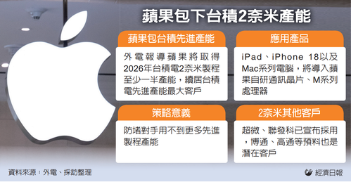 外媒报道称,苹果已经预订了台积电2026年一半以上的2纳米产能。业内猜测,苹果在苹果硅计划中提前预订了晶圆厂最先进的产能,将阻止竞争对手使用最先进的制程技术,成为其制胜策略之一,并继续成为台积电最先进产能的最大用户。