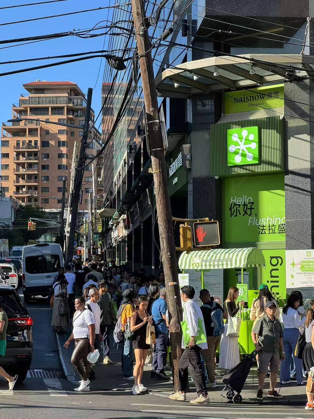 从选址来看,该快闪店落地极具战略考量。记者了解到,法拉盛作为纽约核心华人聚集区,日均人流量超10万人次,租金成本较曼哈顿低30%,且周边 5 分钟范围还有喜茶、沪上阿姨等多家中国茶饮品牌,已形成集聚效应,堪称“奶茶一条街”。
