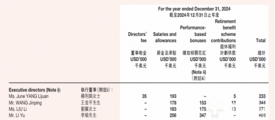 可以看出,杨利娟是从基层员工一路成长起来的,并成功晋升为公司CEO,拥有超过二十年的海底捞餐厅运营和统筹管理经验,能力可见十分出众。但因为她是去年年中加入特海国际,所以她去年的薪酬为23.3万美元,是公司执行董事中的最低薪酬。
