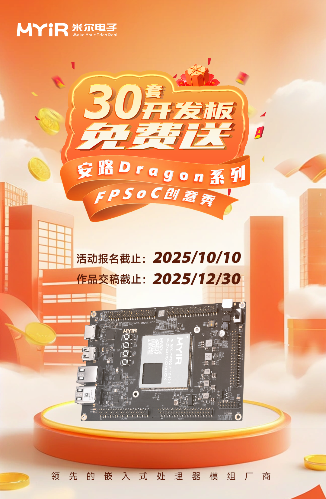 日前,米尔电子2025年举办的米尔-安路飞龙派FPGA/FPSoC创意开发大赛圆满落幕,吸引了众多工程师踊跃参与。为持续推动技术创新,米尔电子现重磅推出第二期福利活动——基于安路DR1M90开发板的创意秀,再次免费赠送30套FPGA开发板,旨在鼓励工程师突破思维边界,通过实践探索安路飞龙派产品的无限可能,为创新应用提供强力支持。
