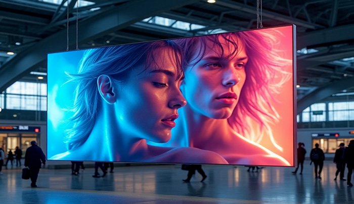 CDD产品系列采用“一屏双面”设计,屏幕正反两面均可同时显示内容,且能根据实际需求,灵活配置不同的点间距与亮度。轻薄机身,安装灵活,支持自由拼接,屏幕四角能够设计成圆弧造型,增添了产品独特性。