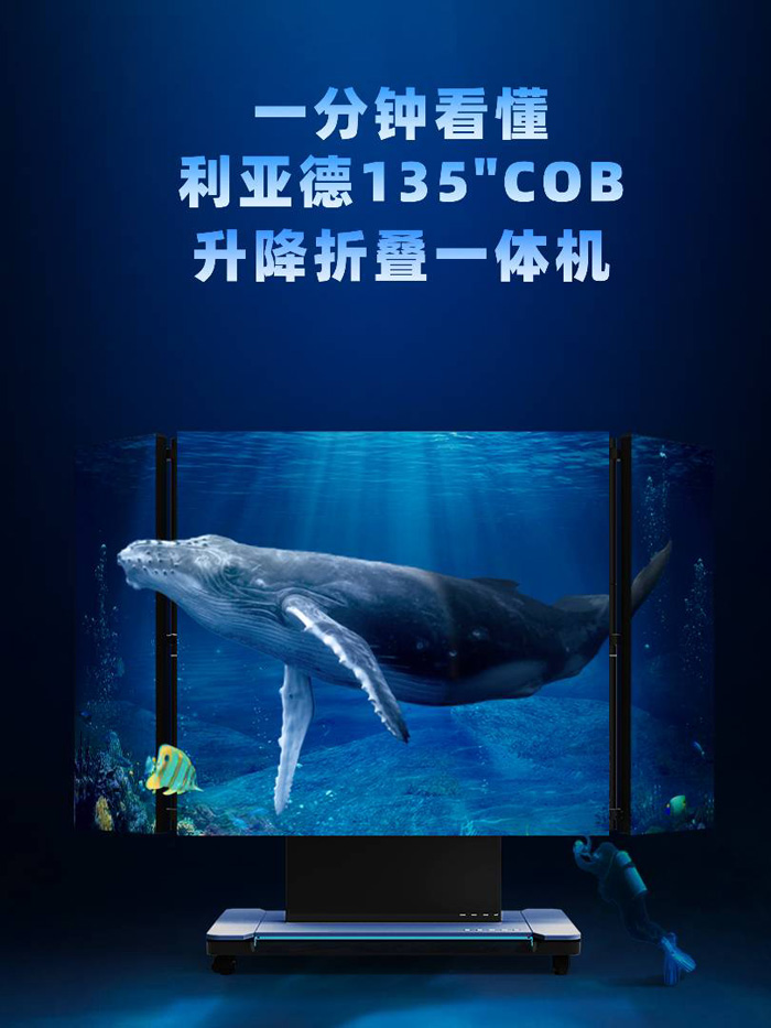 智能LED显示终端采用135英寸超大屏幕,兼容P1.25与P1.56点间距,可选3D显示。整机免安装快速部署,可一键控制升降与折叠:屏幕左右两侧均可折叠600mm,折叠角度0°或180°;升降行程达800mm,升起后整体最高可达2831mm,轻松适配不同空间需求。