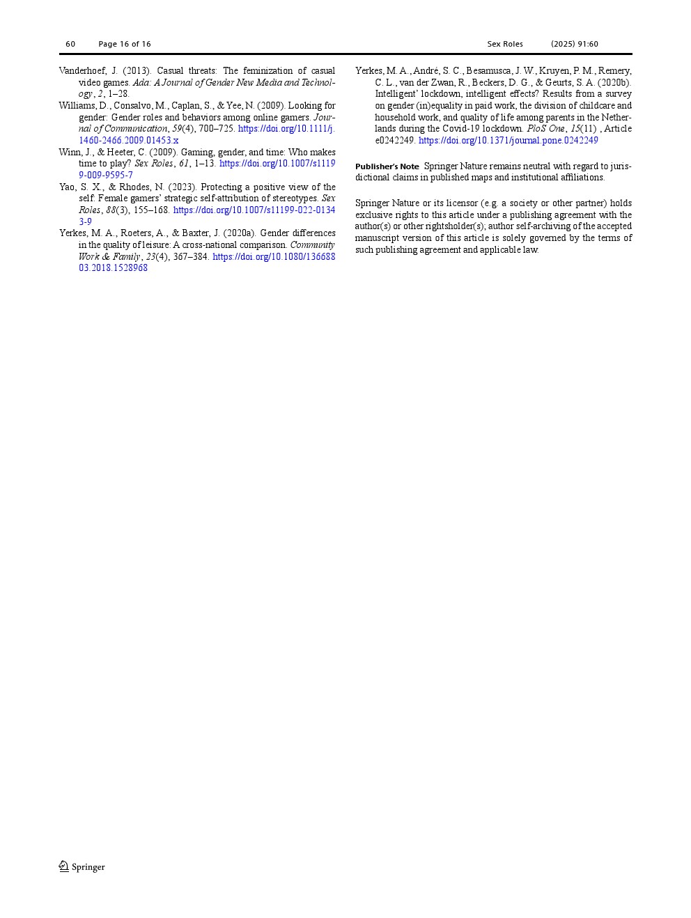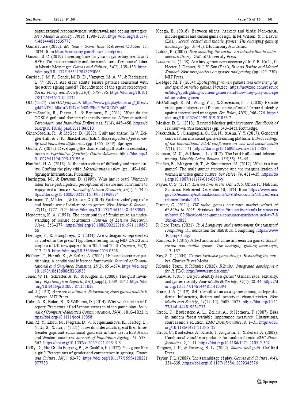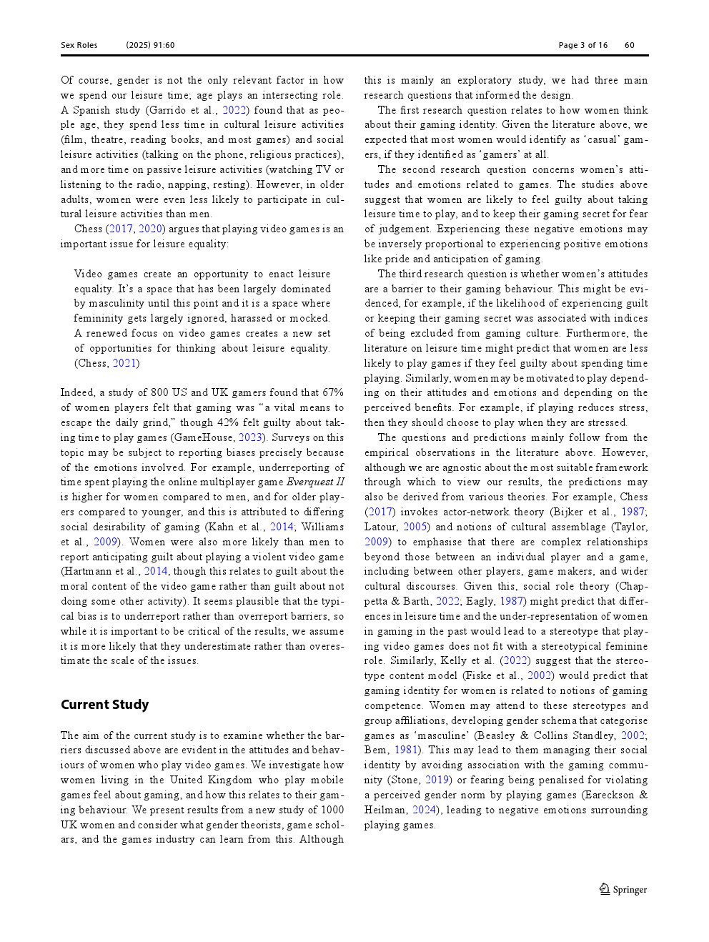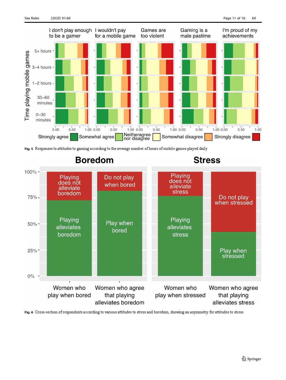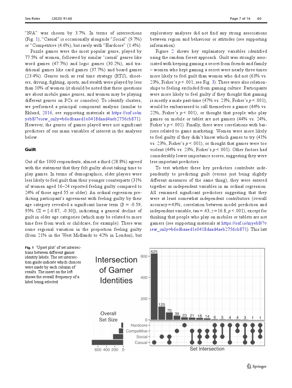 研究显示,28%的受访女性认同自己会对抽时间玩游戏产生愧疚感,年长玩家(55岁以上)的羞耻感低于年轻玩家(16至24岁)。对亲友隐瞒游戏喜好的女性产生愧疚感的可能性是坦诚者的三倍(63% vs 23%),而期待游戏时间的女性比无感者更易愧疚(34% vs 25%)。