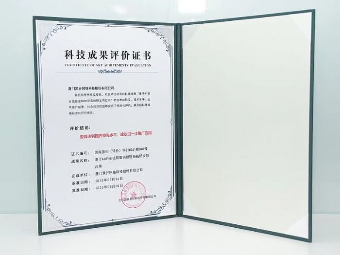 近日,黑谷科技给出了振奋人心的答案——黑谷科技「基于AI的全链路营销智驱系统研发与应用」成功通过权威机构认证,为实体企业数字化营销转型再添硬核助力!