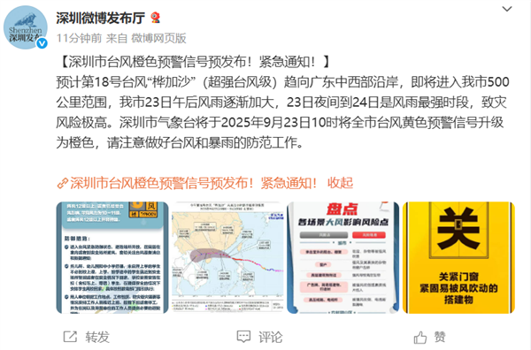 9月23日,据深圳市防汛防旱防风指挥部消息,深圳9月23日下午在全市范围内实行“五停”,其中14时起停工、停业、停市,20时起停运,22日晚已开始停课。