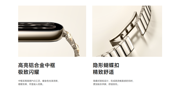 此外,耀影金特别版中框采用高亮PVD工艺,暖金色光泽流转,配备隐形蝴蝶扣,带来流畅美感的同时,更加贴合手腕,舒适自在。
