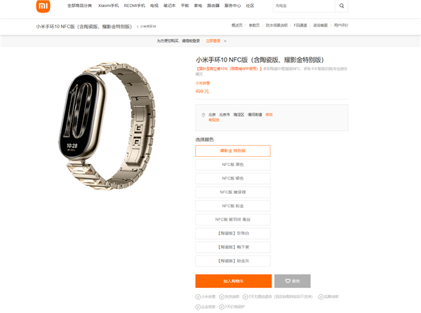 快科技9月23日消息,今日,小米手环10耀影金特别版发布,新品已在小米商城上架,售价499元。