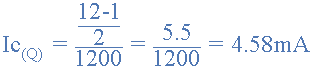 通常,放大器的静态 Q 点对应基极无输入信号的状态,因此集电极电压应处于负载线上 “0V” 与 “电源电压(V_{cc})” 的中点附近(即(V_{cc}/2))。因此,放大器 Q 点处的集电极电流可表示为: