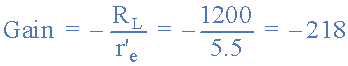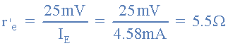 晶体管数据手册指出,对于小信号双极型晶体管,该内阻的数值等于(25mV div I_e)(其中 25mV 是发射极结区的内在电压降)。因此,对于上述共射极放大器电路,该内阻的阻值可计算为: