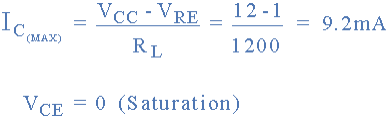 某共射极放大器电路的负载电阻(R_L)为 1.2kΩ,电源电压为 12V。假设(V_{ce} = 0),计算晶体管完全 “导通”(饱和状态)时流经负载电阻的最大集电极电流((I_c))。