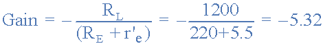该发射极内阻会与外部发射极电阻(R_E)串联,因此晶体管的实际电压放大倍数公式需修正为(包含该内阻):