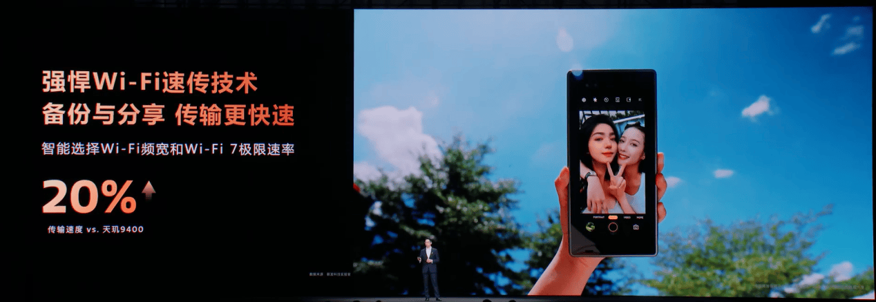 首先是Wi-Fi速传技术。面对家庭与公共场景复杂的热点环境,天玑9500能智能选取Wi-Fi 7网络,在高带宽与低时延间取得最佳平衡,实现“传输满速不发烫”。无论是创作者在咖啡店上传4K素材,还是玩家在宿舍开黑下载大作,速度拉满,设备温控也更从容,长时间在线不降速。