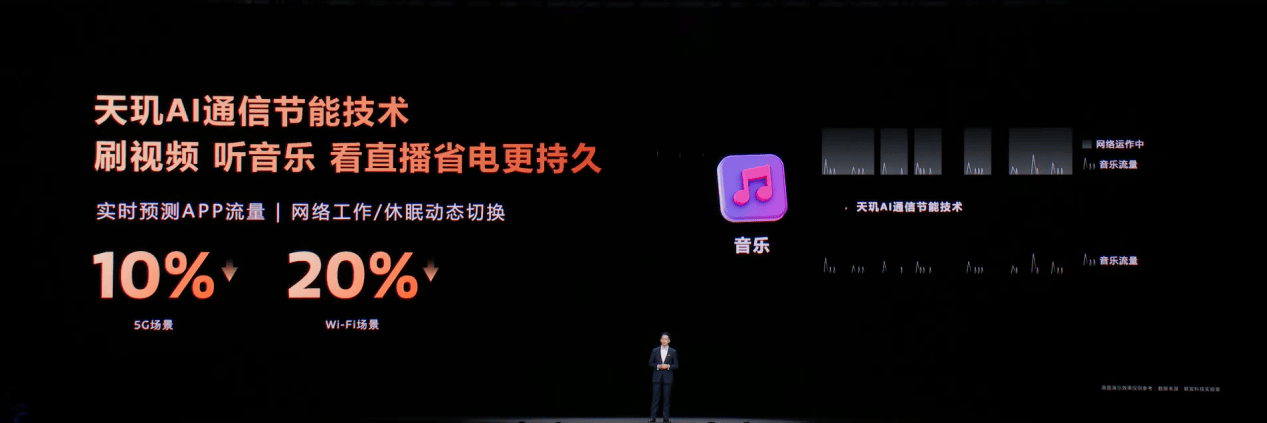 网络策略上,天玑9500将AI选网技术与AI通信节能技术双剑合璧:前者像一个实时“网络调度官”,在蜂窝/Wi-Fi之间机敏切换,优先更强、更稳的连接;后者则像“省电总管”,通过对流量与场景的精细识别,让同样的在线时长消耗更少电量。结果就是:信号更强、电量更省,通勤刷视频、直播连麦、手游上分都能稳住帧率和续航。