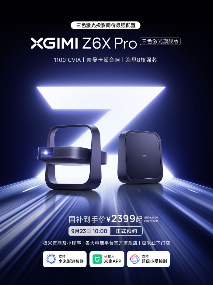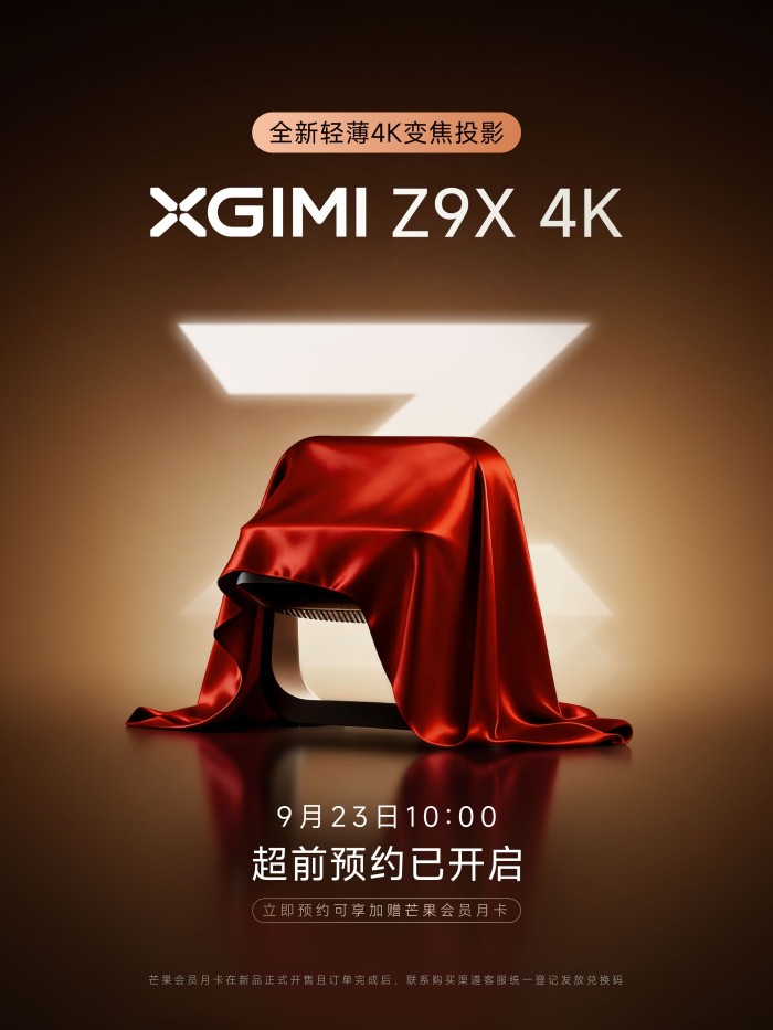 9月23日,极米 Z6X 第五代高亮版、极米 Z6X Pro 三色激光高亮版、极米 Z6X Pro 三色激光旗舰版正式上市,为消费者带来更加多元的产品选择。与此同时,极米 Z9X 4K全新轻薄4k变焦投影已开启全网预约,可享加赠芒果会员月卡。