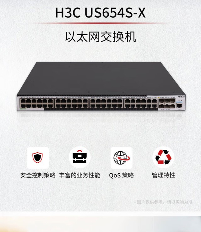 (中关村在线 四川行情)H3C US654S-X是H3C公司采用业界专业的ASIC技术开发的新一代高性能、高端口密度、高安全性且易于安装的智能型可网管的千兆以太网交换机,支持IPv4/IPV6双栈管理和转发,支持静态路由协议和RIP、OSPF、BGP、ISIS等路由协议,支持丰富的管理和安全特性。H3C US654S-X主要定位于大型网络汇聚、中小型网络核心、数据中心服务器接入等场景,满足高密度千兆接入,固定万兆上行口,与H3C公司其它产品一起构建高性能端到端IP网络解决方案。