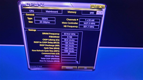 当然为了实现如此高的频率,内存的时序被大幅放宽,如CPU-Z面板显示的CL68模式及128-128-256-1500-2T时序。