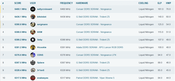 加拿大超频爱好者SaltyCroissant携手技嘉的HiCookie、海盗船的Sofos以及Splave等,成功将海盗船DDR5 Vengeance内存在技嘉Z890 AORUS Tachyon ICE主板上超频至13020MT/s。