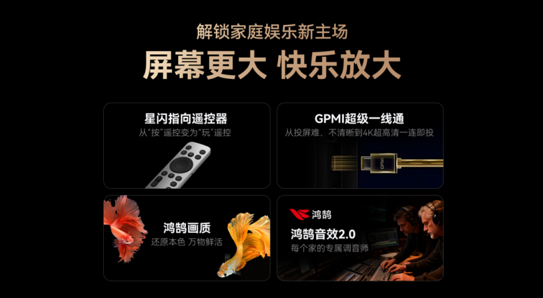 此外,星闪电视2.0搭载鸿鹄音画技术,可以智能优化对比度、色彩与细节,呈现鲜活真实的画面;配合鸿鹄音效2.0,增强人声对白与虚拟环绕声,打造立体沉浸的视听体验,全面升级家庭场景下的交互与娱乐品质。