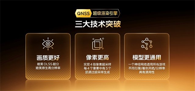 自研电竞芯片 Q3 拥有领先的“自研 QNSS 超级渲染引擎”,实现“一半的性能开销,翻倍的性能和画质表现”。QNSS 架构超分技术内核原理与 DLSS 2.0 高度一致,可实现媲美原生高分辨率的画质提升、4 倍像素超采样以及用于所有游戏的通用模型。还带来 2K 超分截图,让真 2K 画质不但看得见,还能留得住。