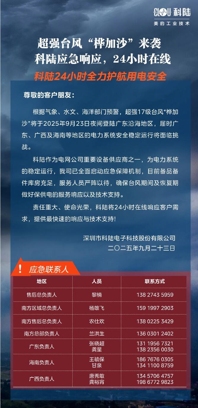超强台风“桦加沙”来袭,科陆应急响应,24小时在线