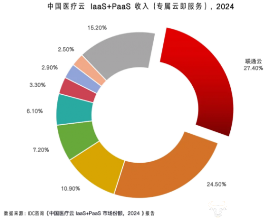 近日,全球知名科技市场研究机构IDC正式发布了《中国医疗云IaaS+PaaS市场份额,2024》报告,揭示了中国医疗云市场的最新格局。报告显示,2024年中国医疗云laaS+PaaS市场规模达到122.4亿元,同比增长8.8%。联通云凭借卓越的技术实力、全面的解决方案以及优质的服务,在中国医疗云IaaS+PaaS整体市场份额中位居前三,且年增速高达23.8%,位列行业榜首!其中医疗专属云市场份额排名第一,展现了其在医疗数字化转型赛道的强劲增长势能与核心竞争力。