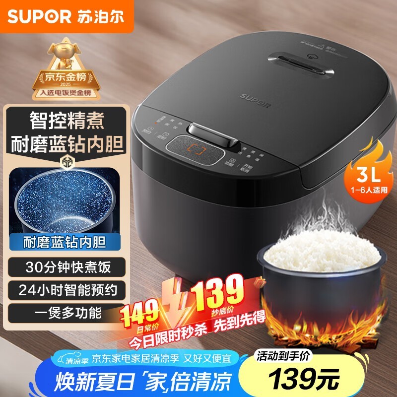 苏泊尔3L迷你电饭煲,到手低至103元