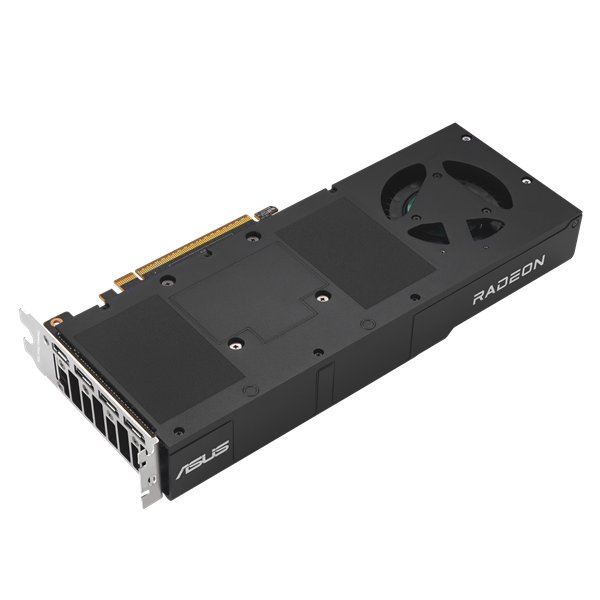 这也是华硕首款采用12V - 2x6电源接口的AMD显卡,配备了32GB的GDDR6显存,采用256-bit位宽,整体设计为紧凑的双槽规格,并配备了涡轮式散热系统。