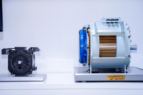 永磁同步牵引电机以“绿色高效、小型轻量、安全可靠、智能智慧”为目标,采用简统化、模块化、系列化设计理念和全封闭自通风冷却结构,应用多项新技术、新工艺、新材料,有效降低全寿命周期维护成本,具有高效、低噪、轻量化等特点,与传统异步牵引电机相比,功率提升1.2倍。