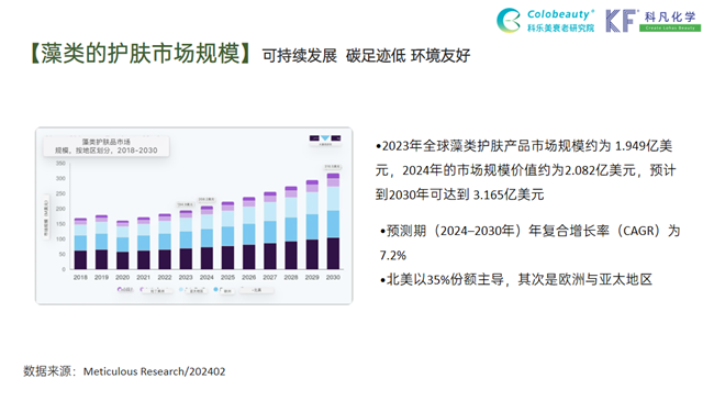 全球微藻护肤市场正处于爆发式增长阶段,消费升级与环保理念将推动其成为美妆行业新蓝海,国际美妆巨头通过微藻打造差异化品牌故事,科乐美提出“微藻+绿色可持续发展”战略,探索美肤与可持续的双赢路径。