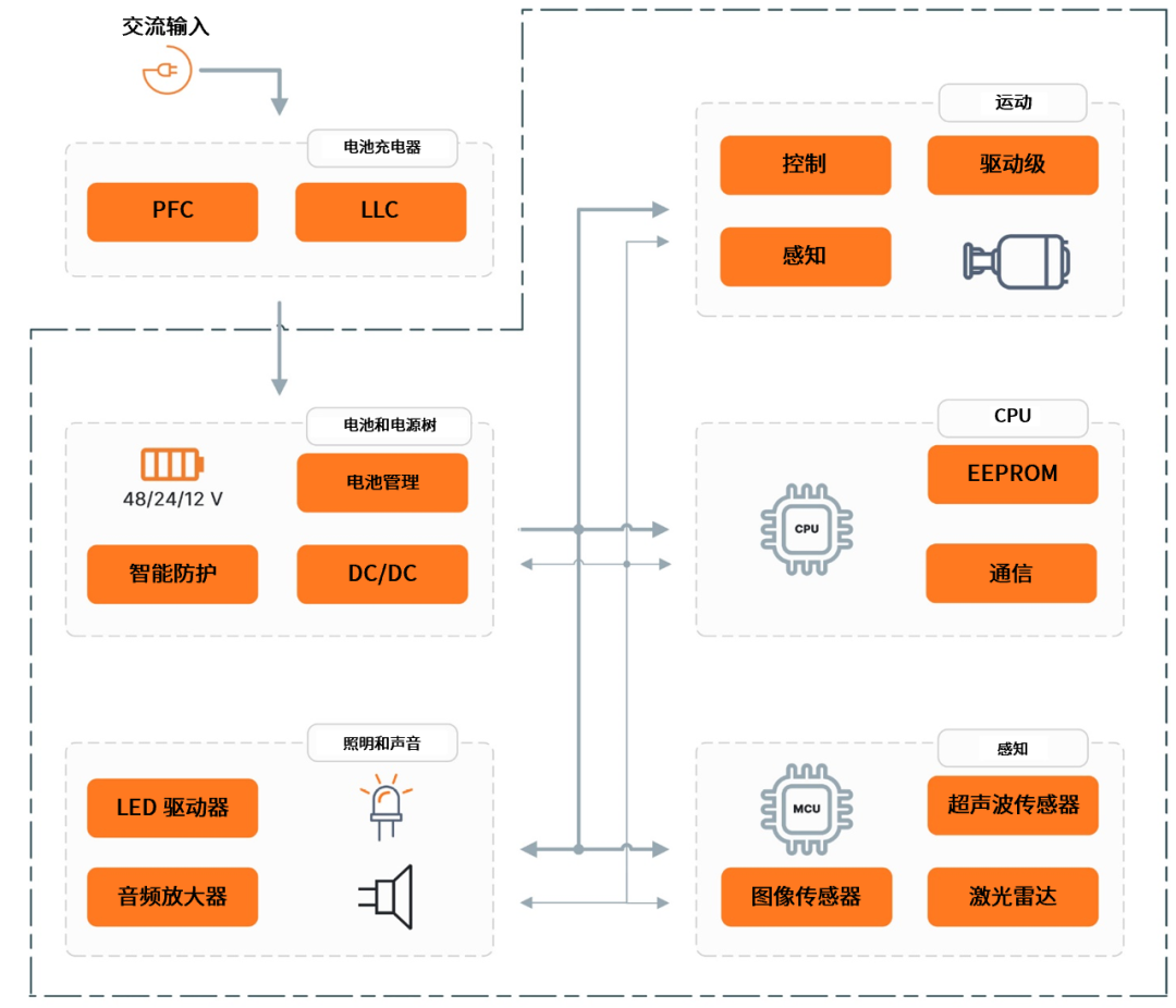 安森美为机器人子系统提供全面且详尽的系统解决方案指南,涵盖以下领域: